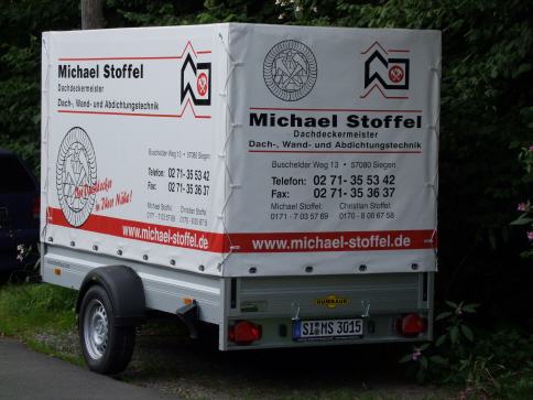 Humbaur-Anhänger mit 1.5 t Zuladungsmöglichkeiten und mit Plane und Spriegel.